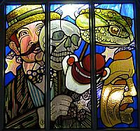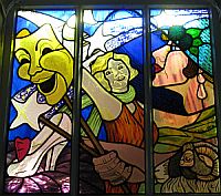 Similarly, the funds for our two splendid stained and painted glass windows, designed and created by the artist Evan Jones, were raised by sponsors pledging money for each section. They remain a unique eye-catching feature of the Playhouse façade.