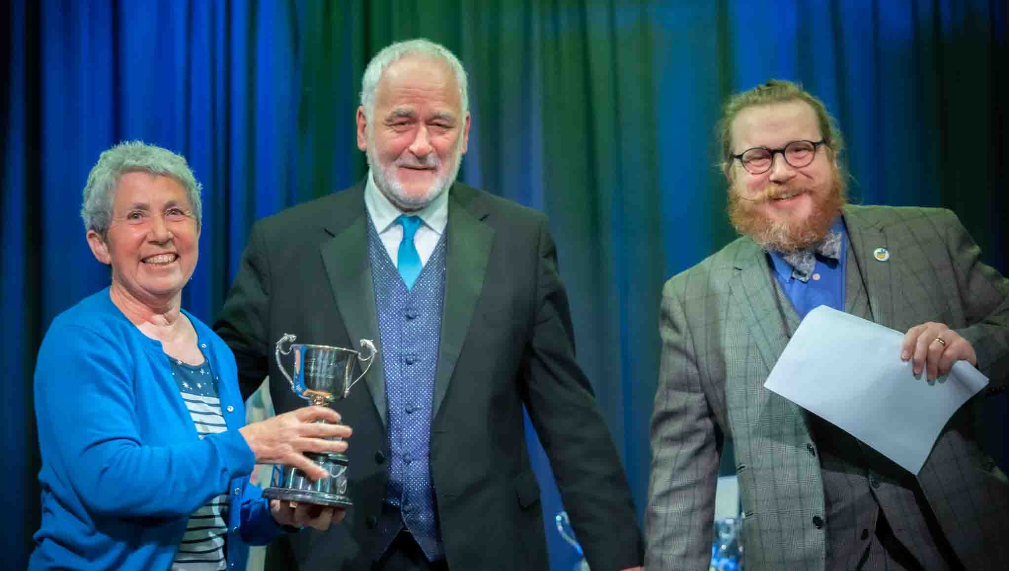 Ruth Dodsworth receives the cup for Best Set from Ian Clarke, President of the NDDA and Chris Baglin, Adjudicator