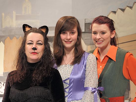 (l to r) Rachel Smith as The Cat, Vicki Burton as Alice Fitzwarren, Vicki Gaunt as Dick Whittington)