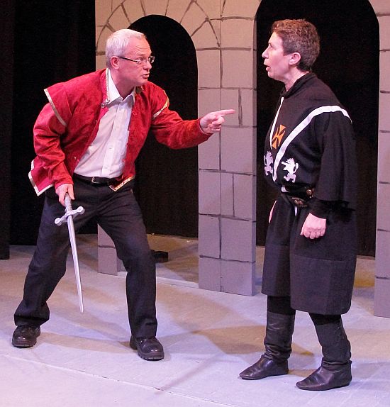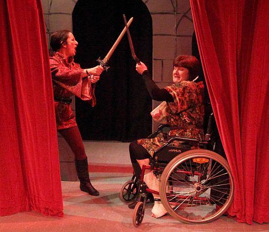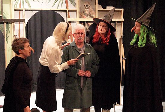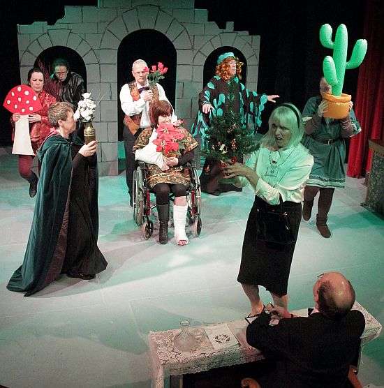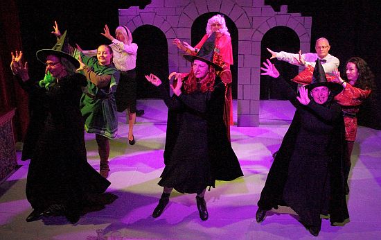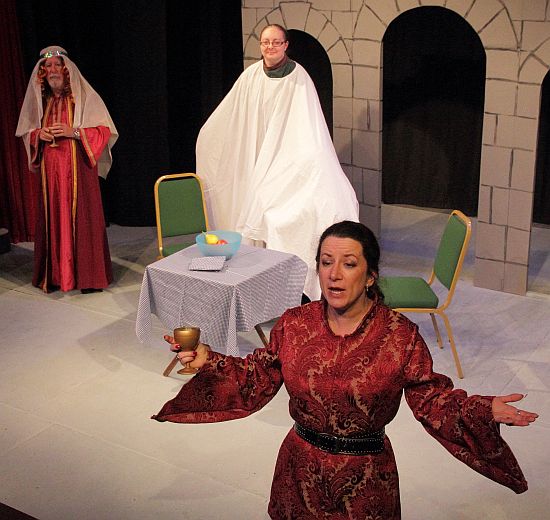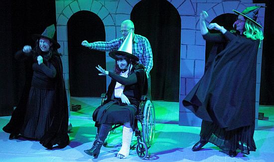 Central to this play, of course, are the 3 witches and in this performance it was no exception as Dawn, Felicity and Kate (Debbie Forsyth, Ruth Dodsworth and Carol Bailey) cackled away merrily, with Kate becoming increasingly infirm as the play progressed – she ended up playing the role in a wheel chair! The three actresses were very funny in a wide variety of other comedic roles