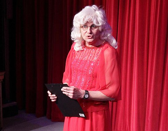 Peter Buller, the adjudicator, Mr Peach, bemused the majority of the audience with his adjudication, but did most of it in “drag” much to everyone’s delight, which finally explained why he spent most of the evening applying various layers of make-up, whilst purporting to watch the play.