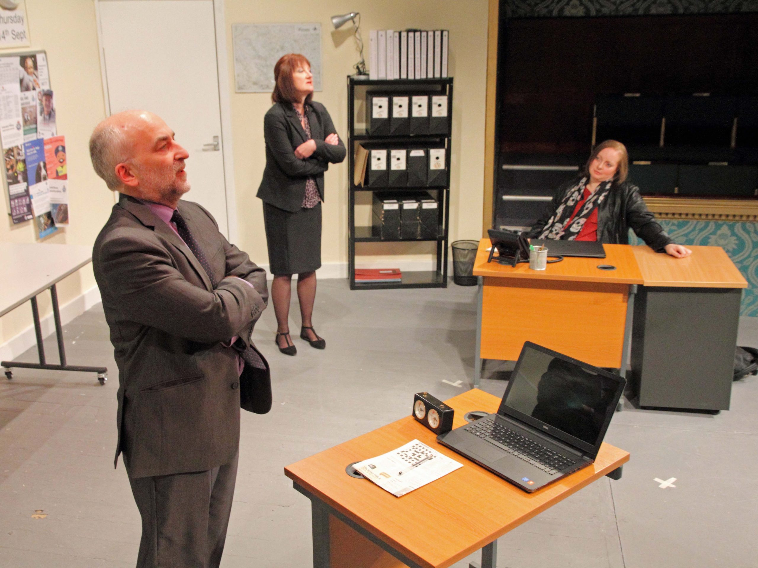 Keith Burton has given us a real challenge with this play.  The Playhouse team certainly rose to that challenge with a clean, workable set; innovative use of technology; excellent acting and skilful direction.  There was so much to take in throughout the play.  At one point Ros Jakes says: “It’s important we look at every detail.”  At times one could imagine you could hear the brain cogs grinding in the audience.  After a plot update during the action, Ros says “My head hurts!”  The AV screen was a godsend for some to keep up with the twists and turns.