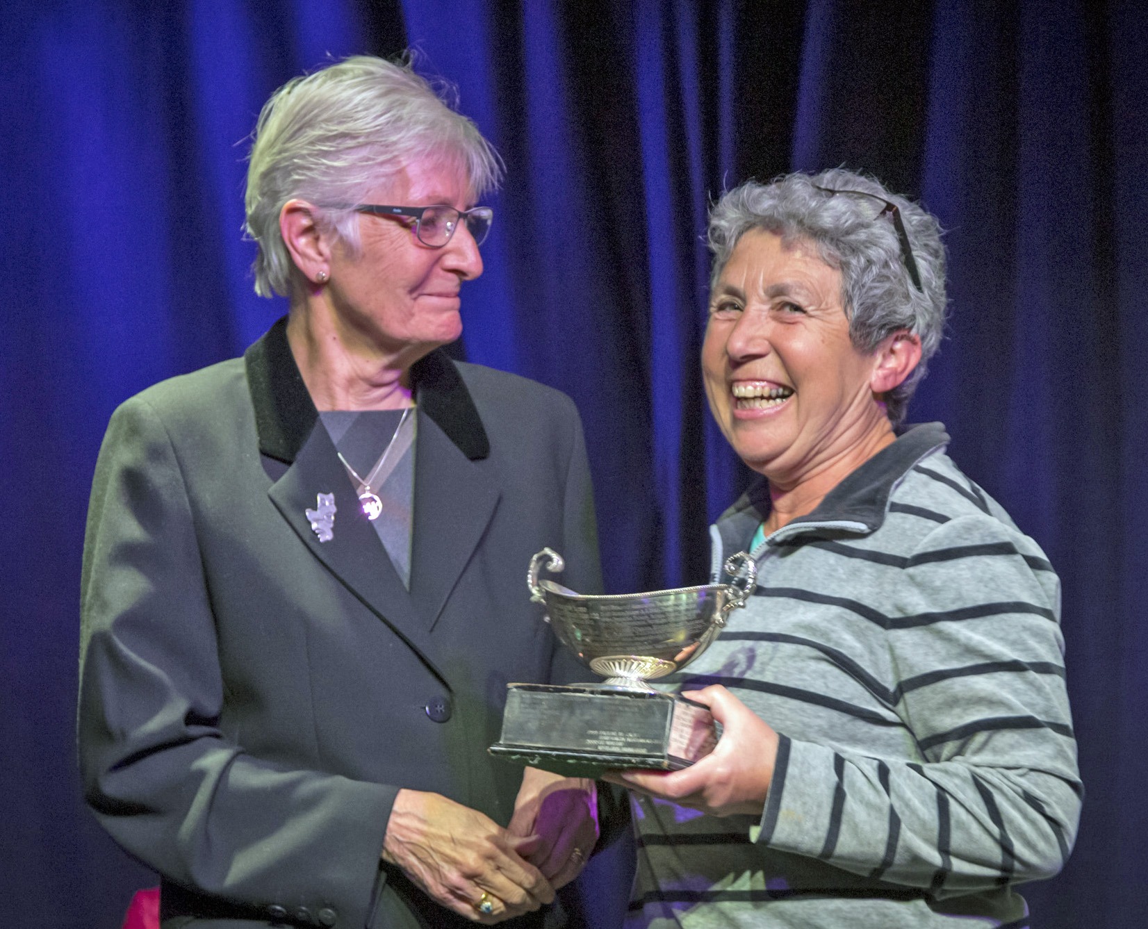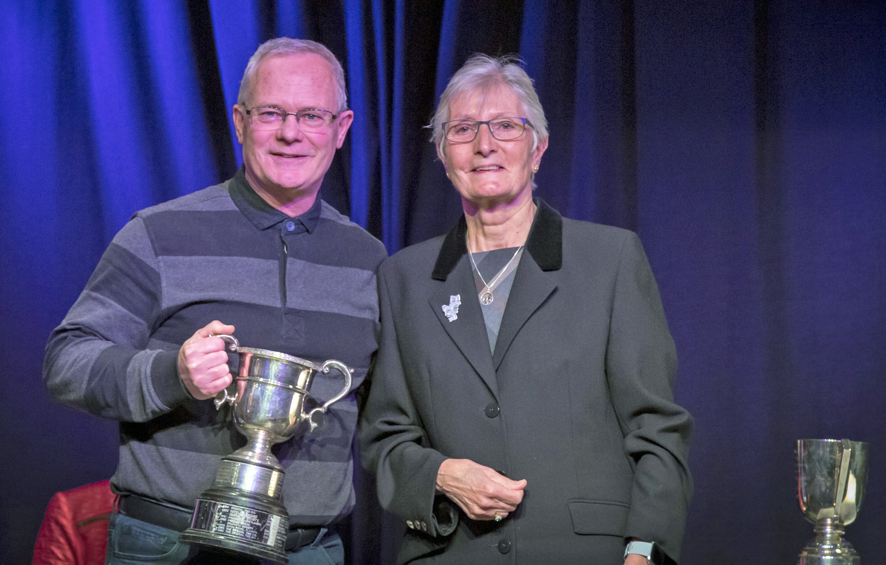 Keith Burton receives the Eva Houseman Trophy from Sue Hickson, NDDA President