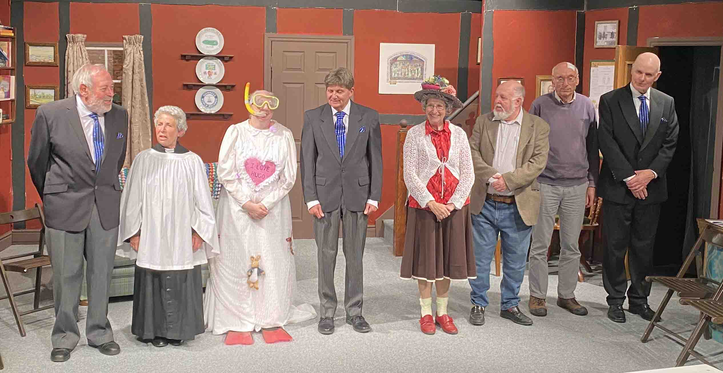 Deftly directed by Sue Hickson.  The staging, with minimal changes by moving chairs and a table, kept the many scenes flowing.  Backstage crew as ever a vital part of the production.  Also sound and lighting.  Special mention for the highly creative Wardrobe department.