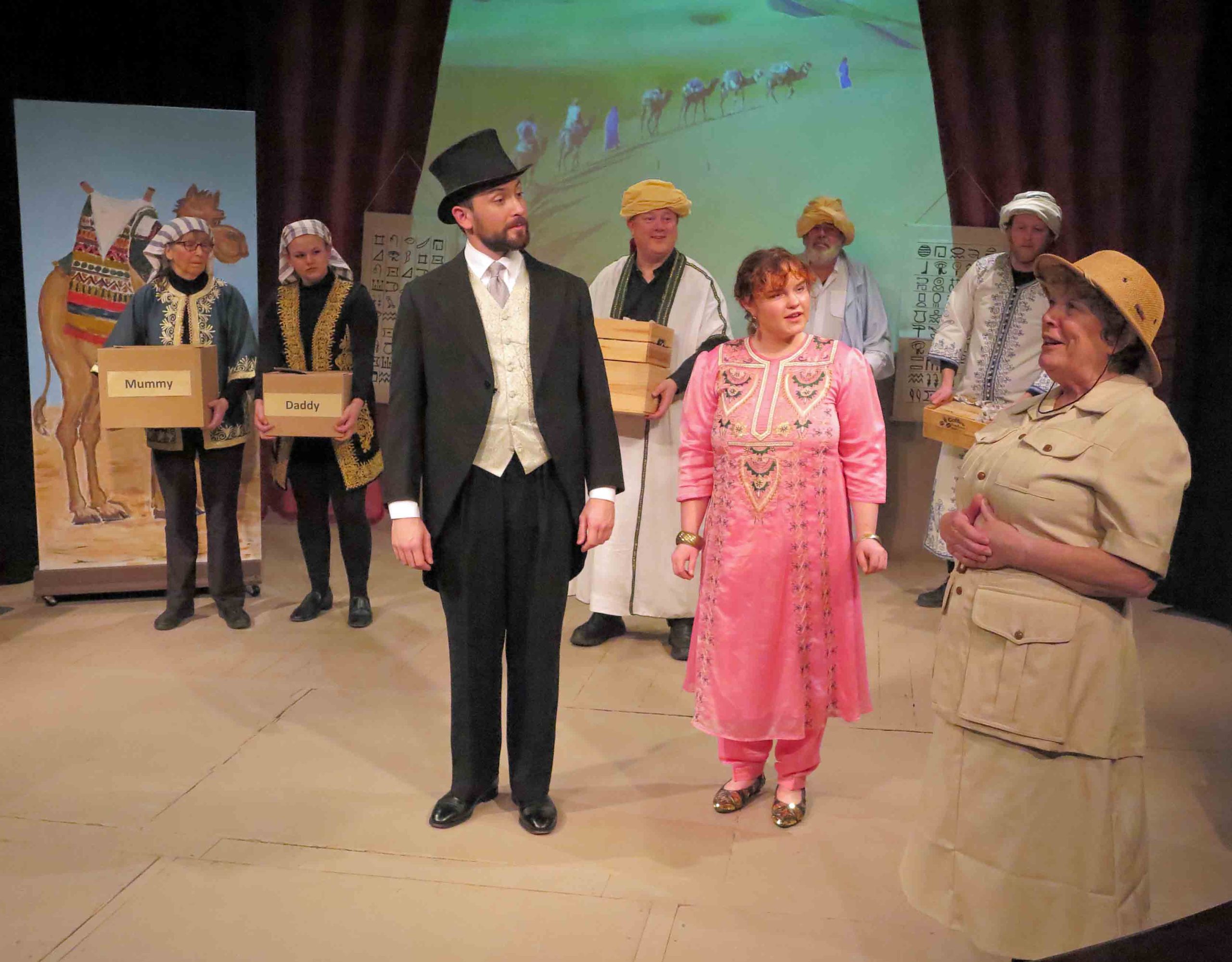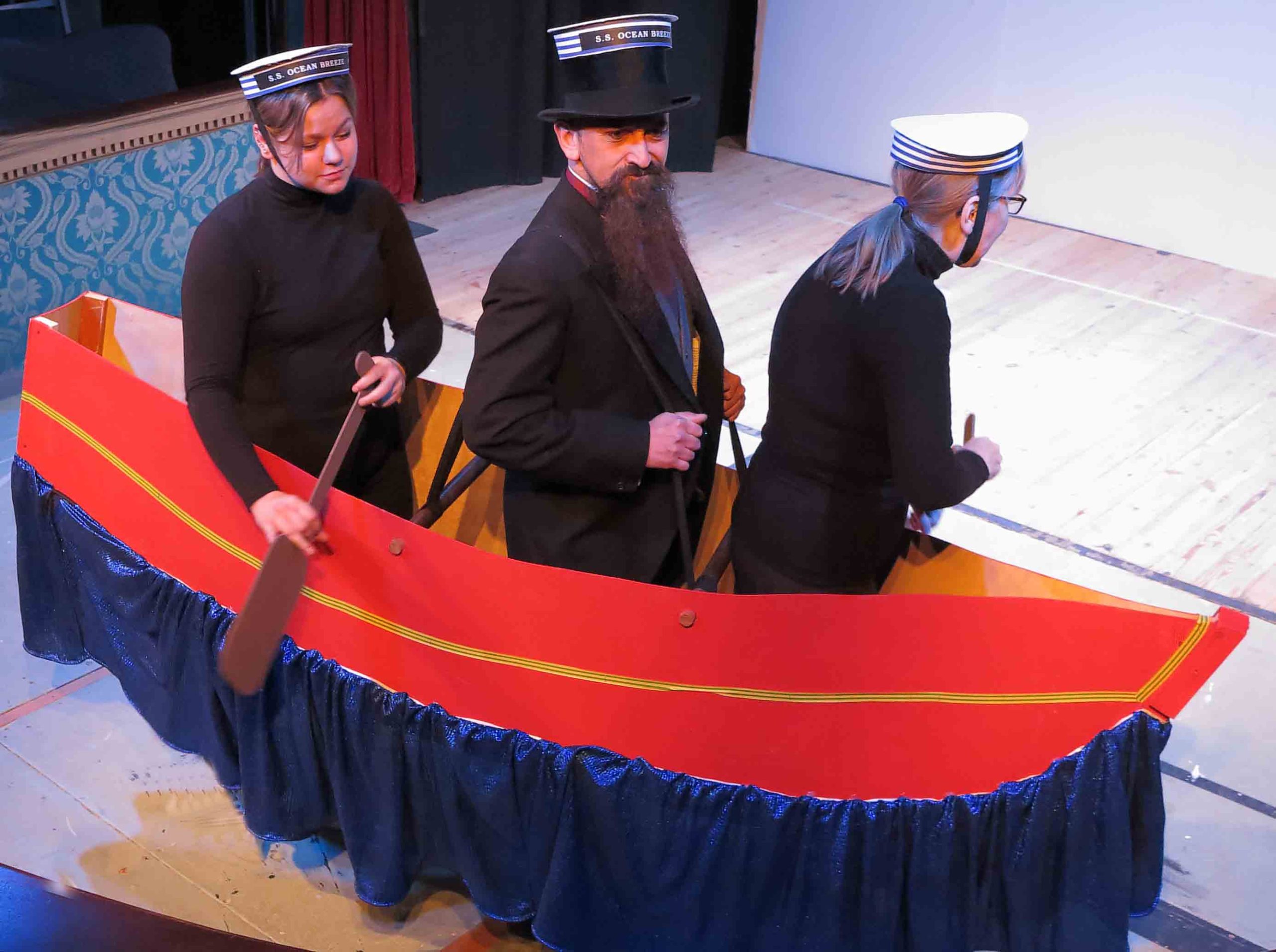 Landing in Hong Kong, Passpartout is rescued by SatNav from Gringeworthy’s dastardly attempt to delay our travellers with help from the audience. No panto complete without a gratuitous deus-ex-machina moment!