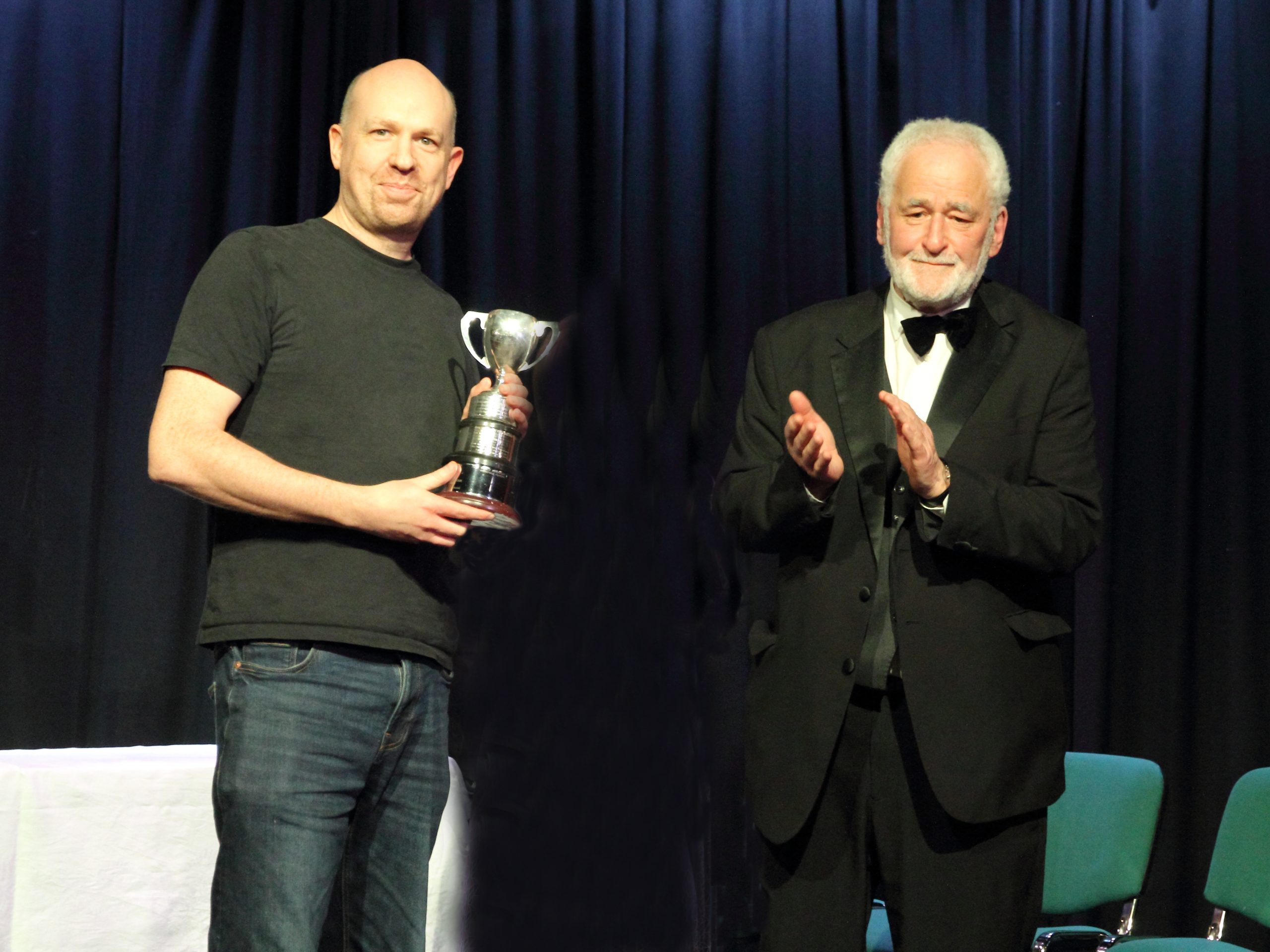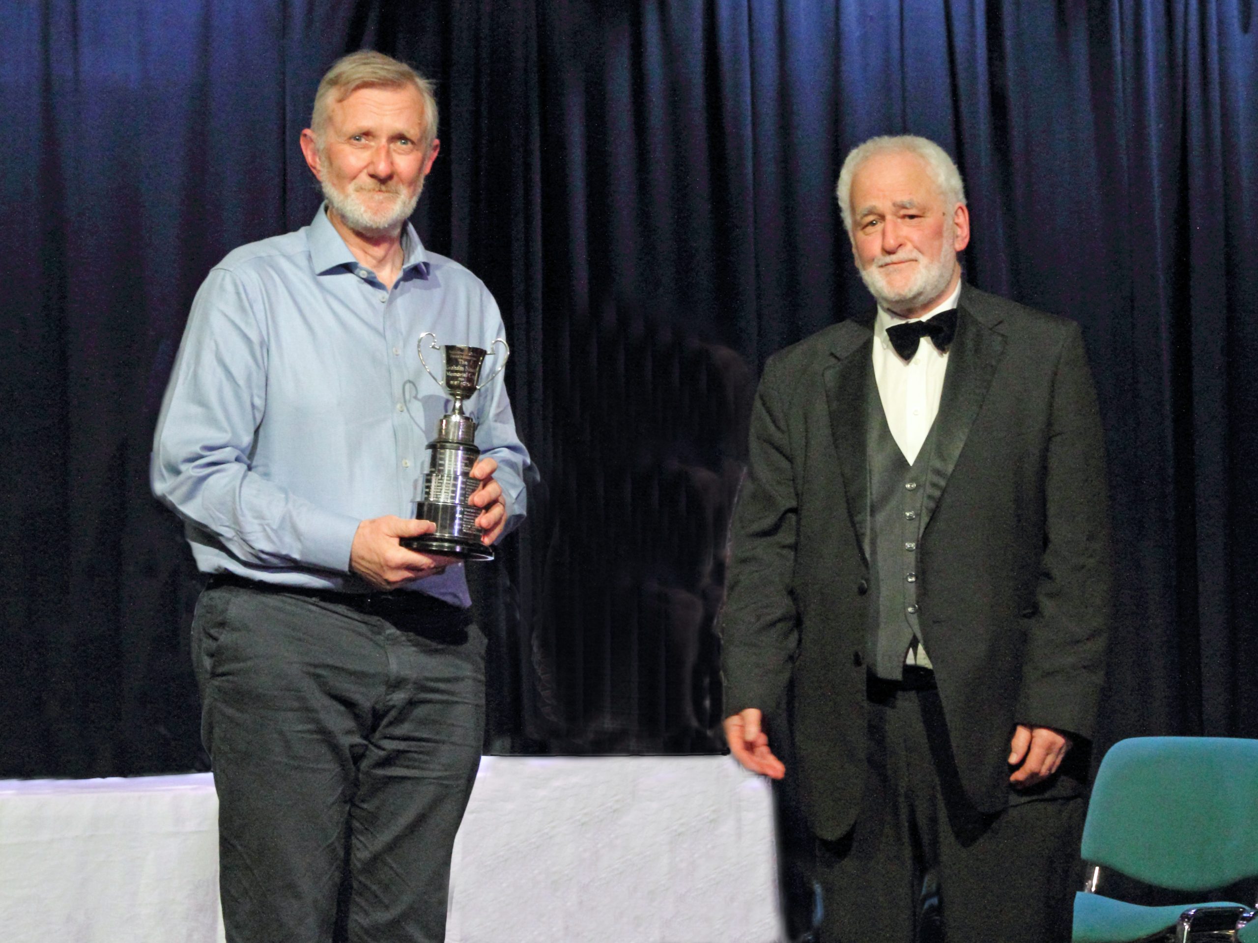 Tom Barber receives the Cup for Best Director from Ian Clarke (President and Treasurer of Nidderdale and District Drama Association)