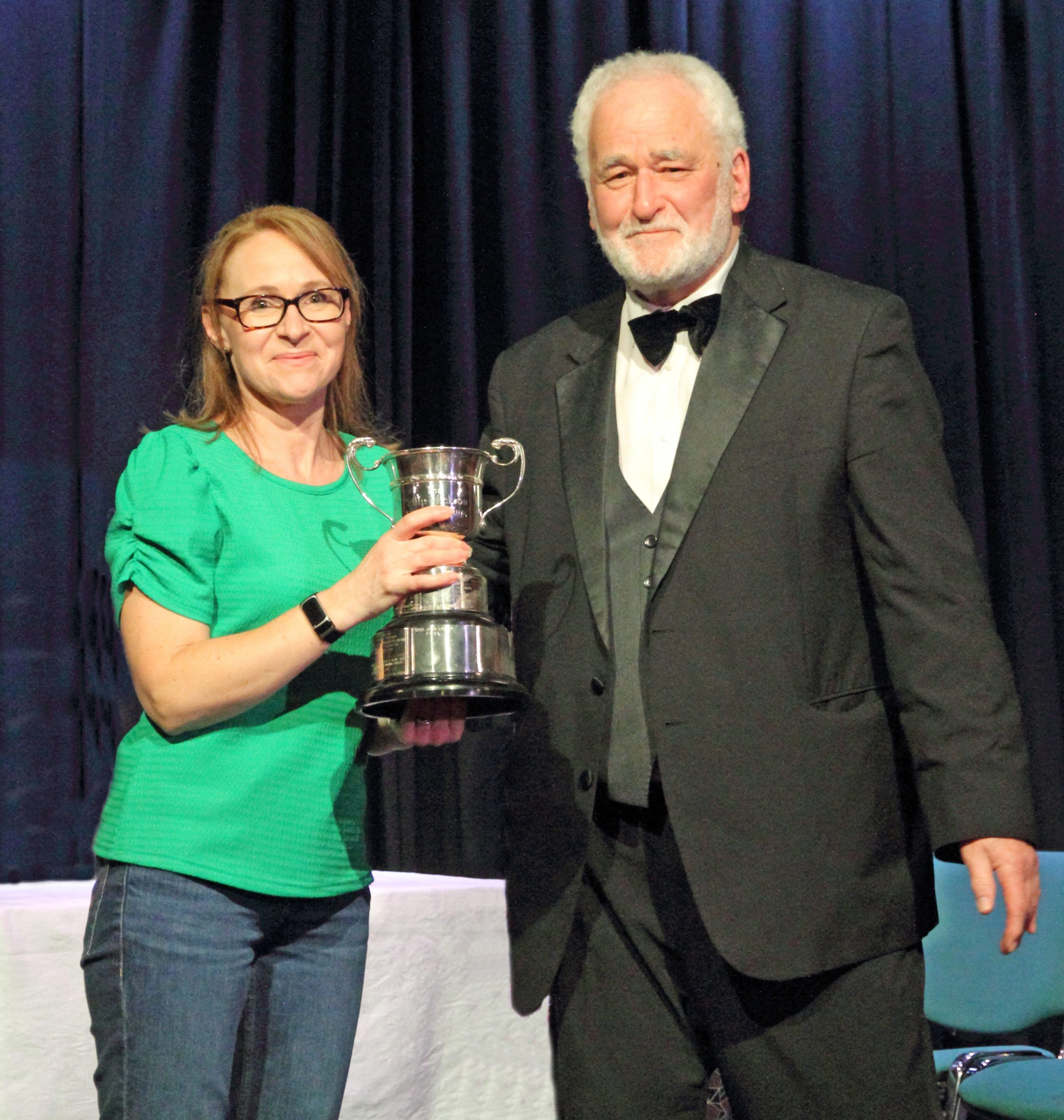 Jenny MacNair accepts the Phil Hickson Memorial Trophy for excellent ensemble acting