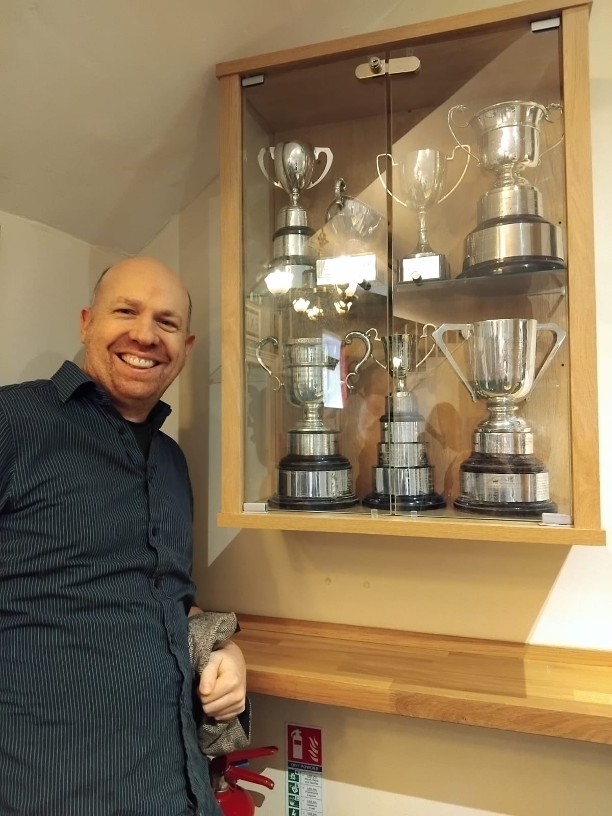 Tom Barber with Trophy display in the Playhouse